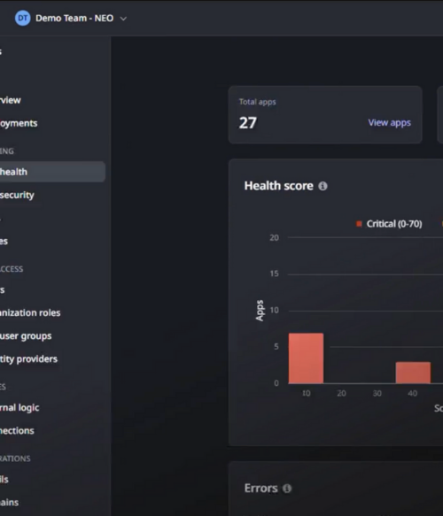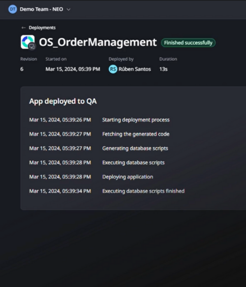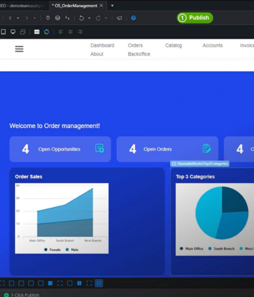 By providing reusable building blocks in a visual UI, the OutSystems AI-powered low-code platform makes delivering and iterating quick and easy. Deploy with a single click, and let the platform handle quality assurance, code reviews, and real-time monitoring, whether it’s new or an update.